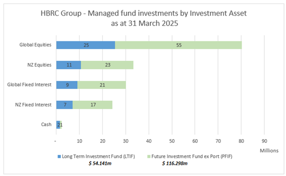 28. Total Group Investment Fund portfolios capital at 31 March 2025 was $170.4m, $2.1m below the inflation-adjusted contribution target due to the down-turn in global financial markets.
