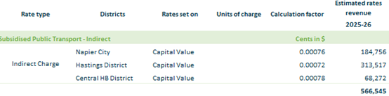 2.3.2. Subsidised Public Transport Indirect– all rating units in Napier, Hastings, and Central Hawke’s Bay Districts on equalised capital value.