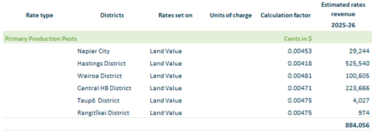 2.3.5. Primary Production Pests – based on non-urban rating units on an equalised land value.