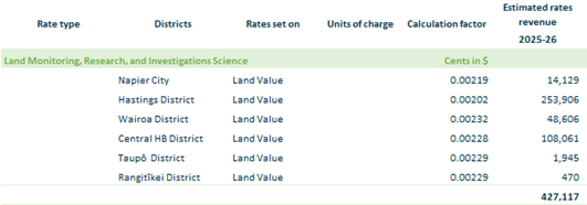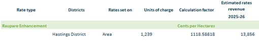 2.3.16.11. Raupare Enhancement – based on rating units in Hastings District within the Raupare Enhancement area and calculated on area.