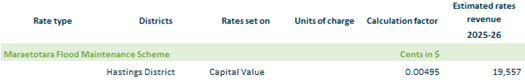 2.3.10. Maraetotara Flood Control – based on rating units in Hastings District within the Maraetotara Flood scheme footprint on a capital value.