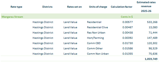 2.3.11. Mangarau Stream – based on rating units in Hastings District within a designated valuation roll footprint on land value.
