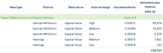 2.3.12. Upper Makara – based on rating units in Central Hawke’s Bay and Hastings District within the Upper Makara Flood scheme footprint on an equalised capital value.