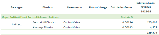 2.3.14. Upper Tukituki Flood Control Scheme Indirect - Based on all rating units in Central Hawke’s Bay and those rating units in Hastings District within the Upper Tukituki Flood scheme footprint on an equalised capital value