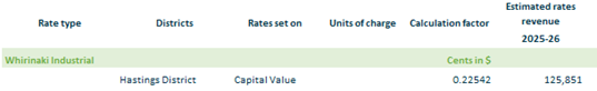 2.3.15. Whirinaki Industrial – based on rating units in Hastings District within the Whirinaki Industrial Flood scheme footprint on a capital value.