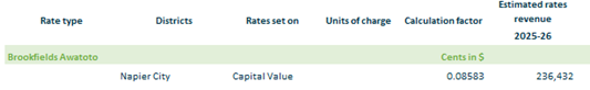 2.3.16. Various Streams and Drainage Schemes 2.3.16.1. Brookfields & Awatoto – based on rating units in Napier City within the Brookfields Awatoto drainage area on a capital value.