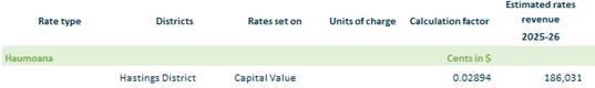 2.3.16.3. Haumoana Te Awanga – based on rating units in Hastings District within the Haumoana drainage area on a capital value.