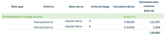 2.3.16.6. Ohuia, Whakaki – based on rating units in Wairoa District within the Ohuia drainage area on a capital value.