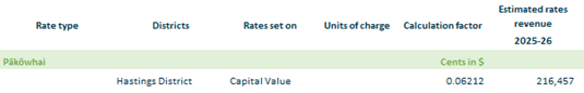 2.3.16.7. Pākōwhai Brookfields – based on rating units in Hastings District within the Pākōwhai drainage area on a capital value.