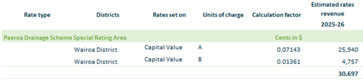 2.3.16.8. Paeroa Drainage – based on rating units in Wairoa District within the Paeroa drainage area on a capital value.