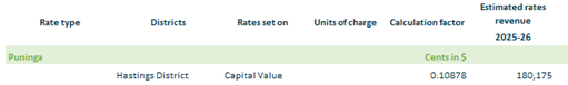 2.3.16.10. Puninga – based on rating units in Hastings District within the Puninga drainage area on a capital value.