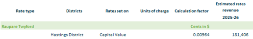 2.3.16.12. Raupare Twyford – based on rating units in Hastings District within the Raupare Twyford drainage area on a capital value.