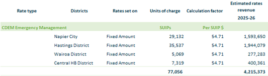 2.4.2. CDEM- Emergency Management – fixed amount per separately used or inhabited part, based on location.