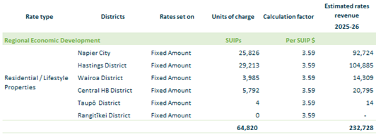 2.4.4. Regional Economic Development – residential and lifestyle properties as a fixed amount per separately used or inhabited part of a rating unit.